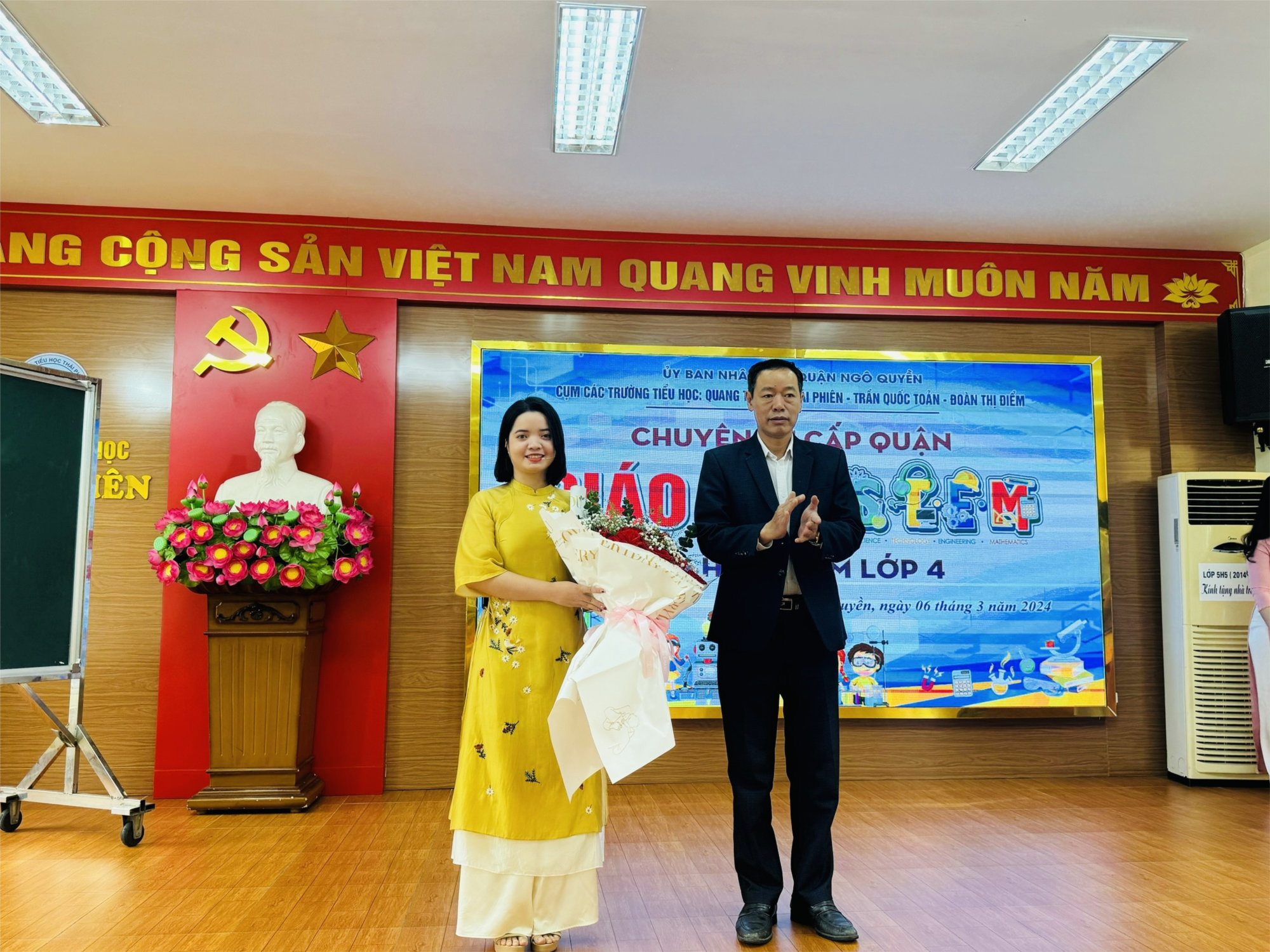Thực hiện sự chỉ đạo của Sở Giáo dục và Đào tạo, thực hiện Kế hoạch triển khai nhiệm vụ năm học 2023-2024, với mong muốn góp phần triển khai sâu, rộng, hiệu quả giáo dục STEM trong trường học, nhằm mục đích tháo gỡ những khó khăn cho giáo viên, được sự chỉ đạo của Phòng GD&ĐT quận, sáng ngày 06/03/2024, cụm 4 trường: Tiểu học Quang Trung – Tiểu học Thái Phiên – Tiểu học Trần Quốc Toản – Tiểu học Đoàn Thị Điểm đã thực hiện chuyên đề “Dạy học nội dung giáo dục STEM”.