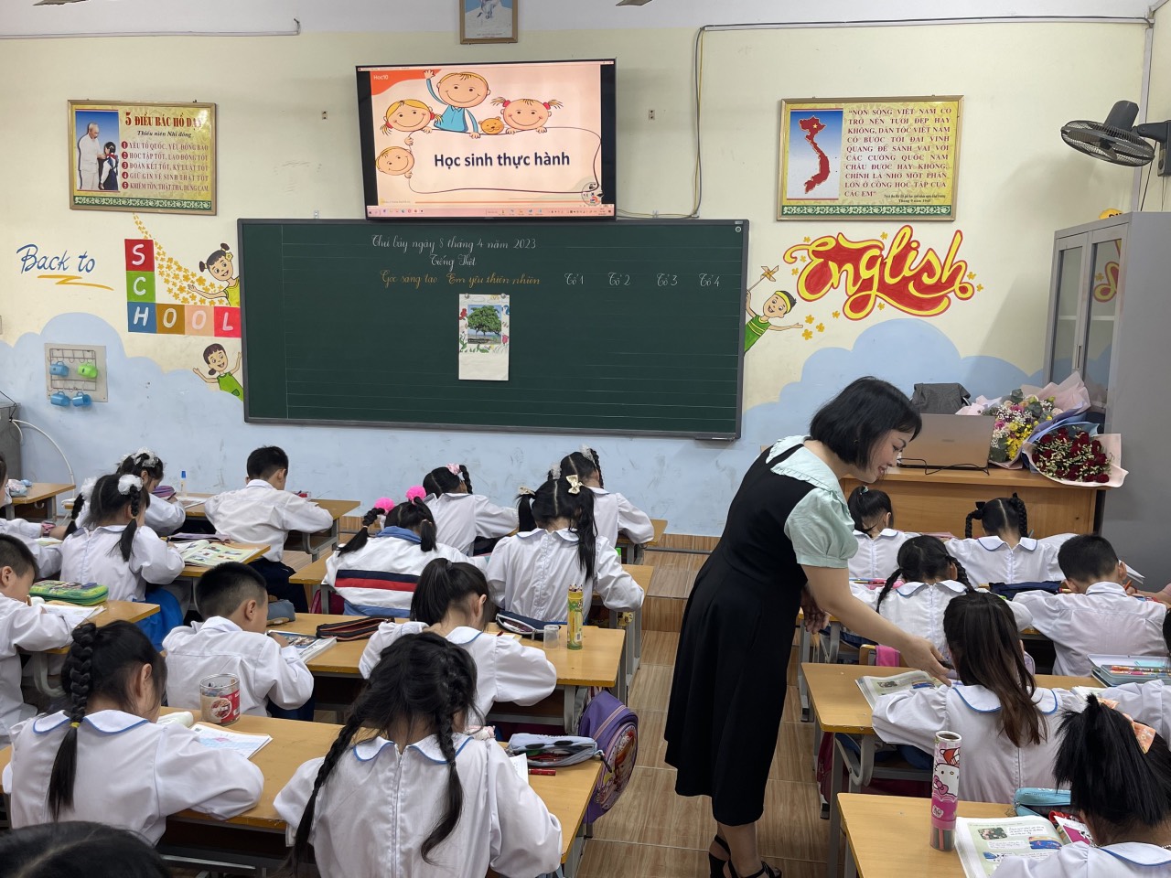 Trong tiết dạy, cả 2 cô giáo đã sử dụng có hiệu quả các thiết bị dạy học, đổi mới hình thức, phương pháp dạy học nhằm tạo hứng thú, phát huy năng lực, phẩm chất, giúp các em học sinh tiếp thu kiến thức một cách tích cực, chủ động, hình thành hành vi, thái độ phù hợp nhất cho các em học sinh. Bên cạnh đó, chuyên đề còn chú trọng kết hợp kiến thức liên môn, quan tâm lồng ghép giáo dục đạo đức, kĩ năng sống và phát huy khả năng sáng tạo của các em học sinh. Tiết học diễn ra nhẹ nhàng, vui vẻ, hiệu quả.