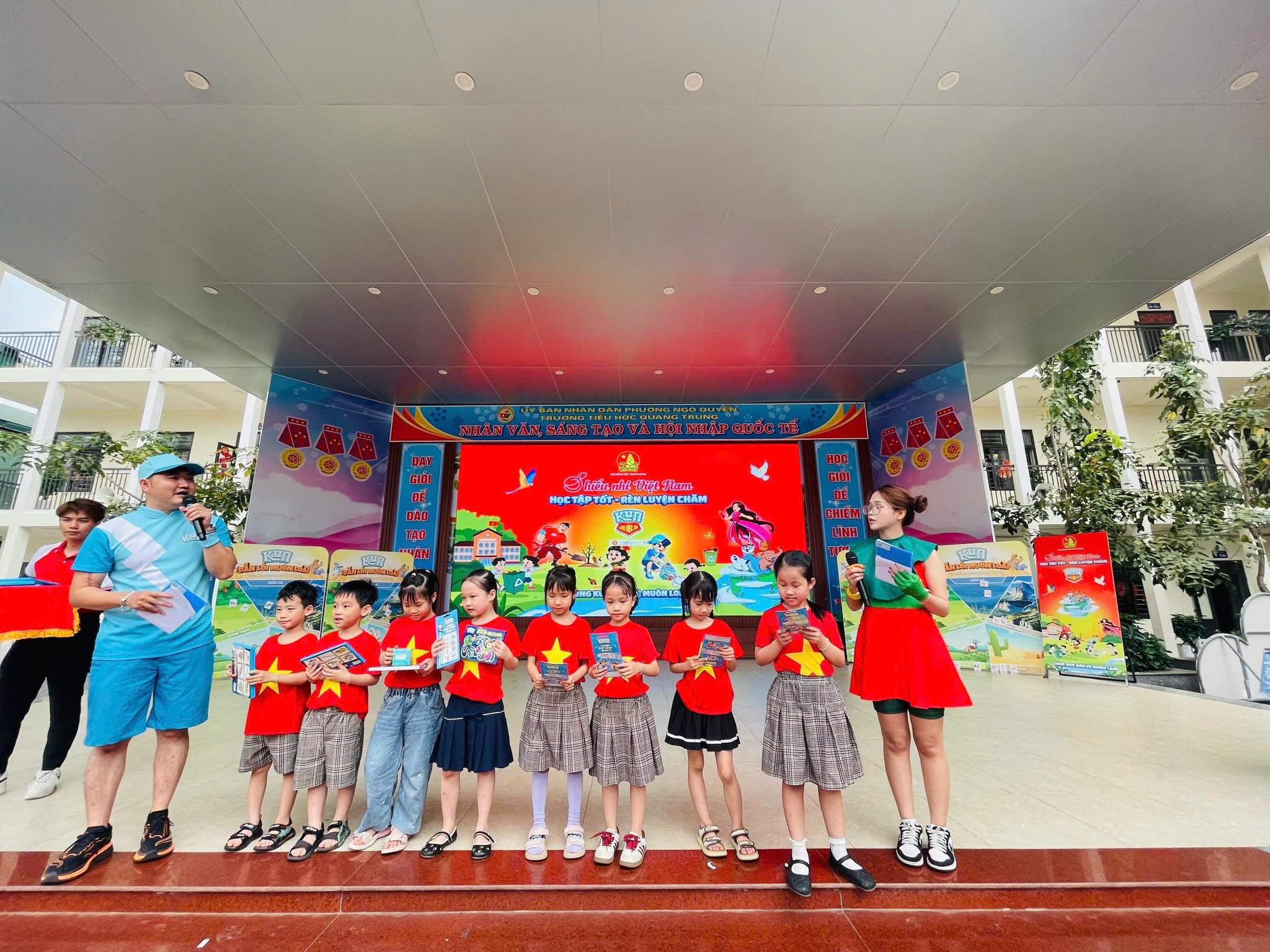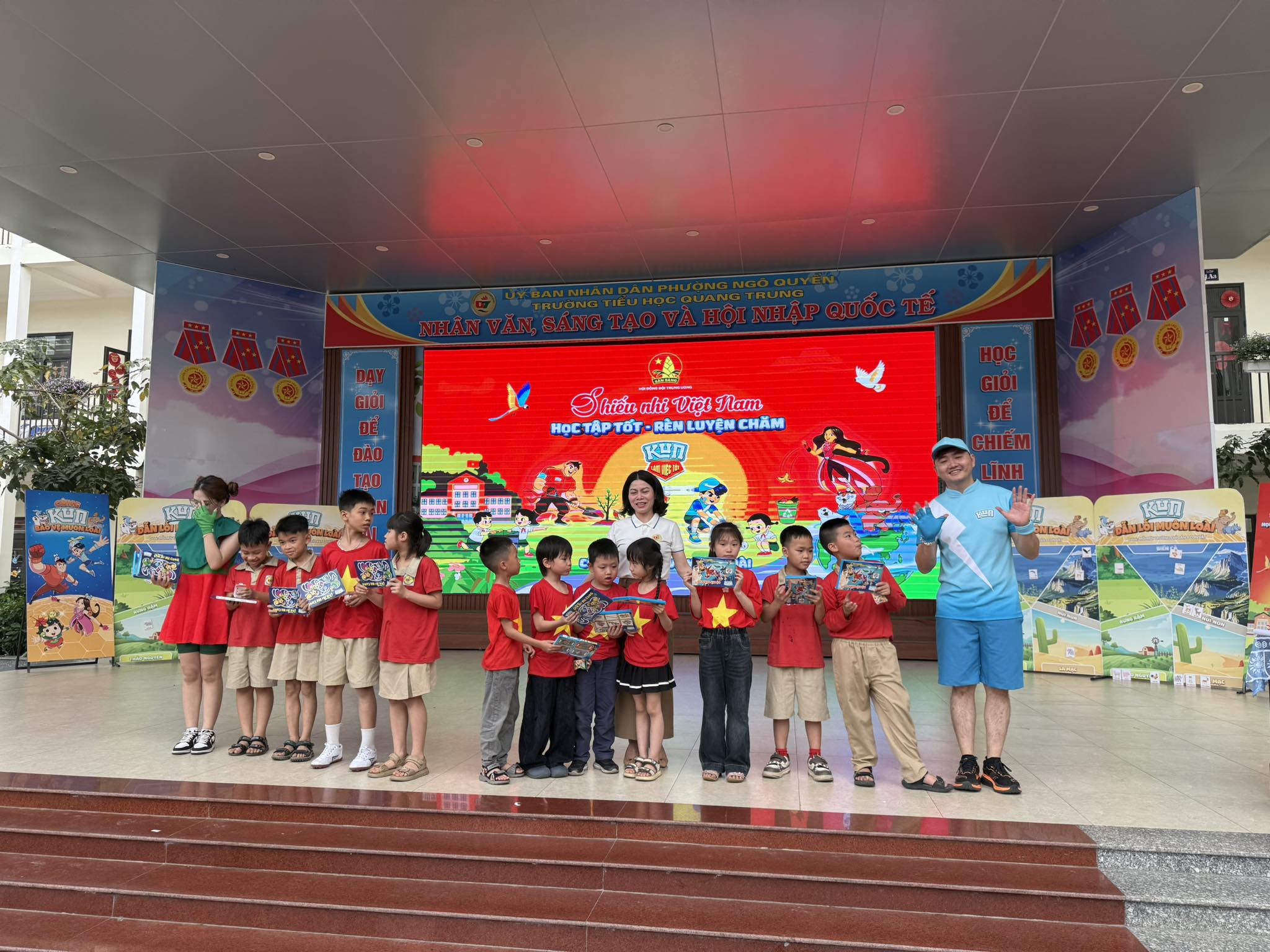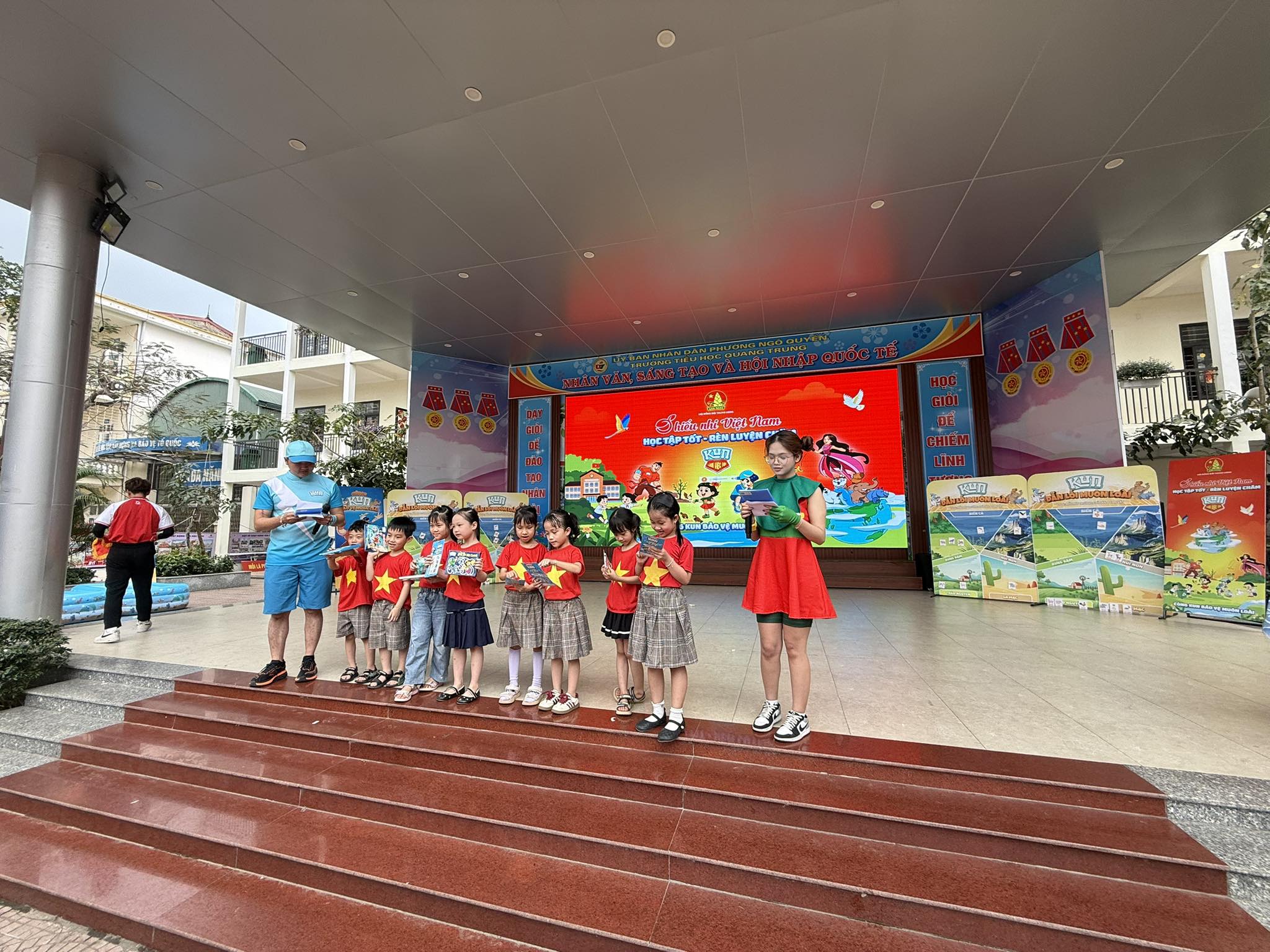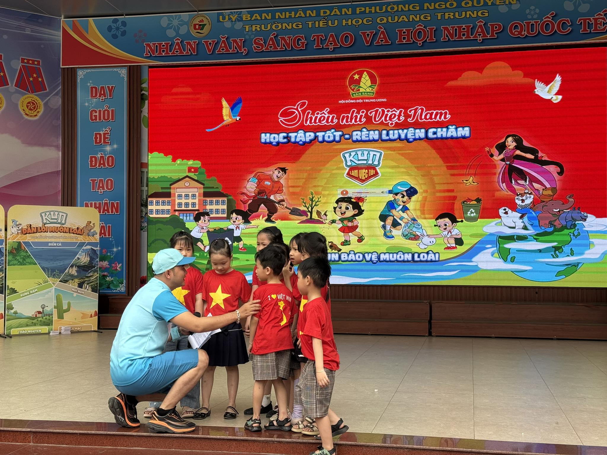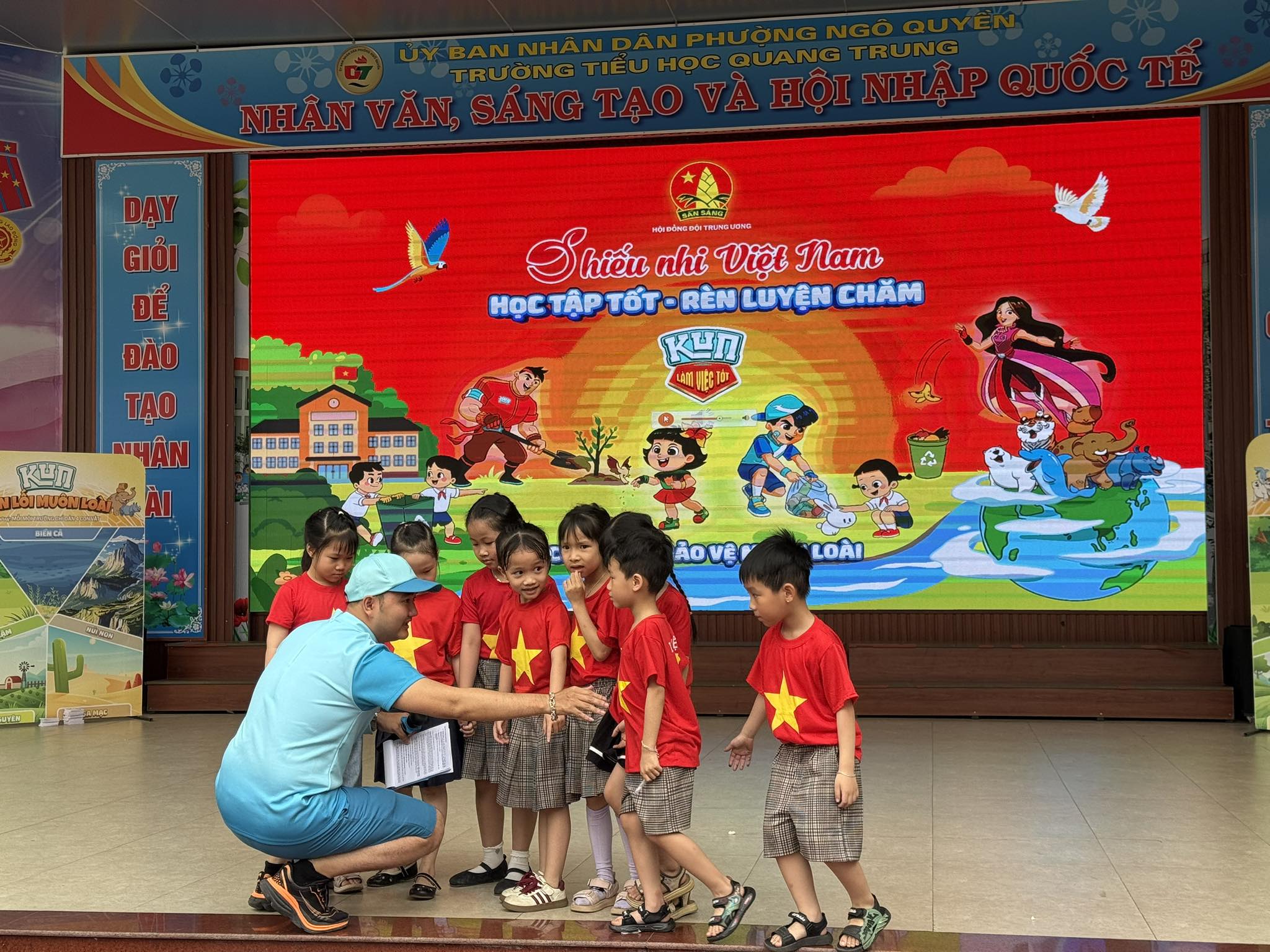Trường Tiểu học Quang Trung rất vinh dự khi là một trong 20 trường trên toàn quốc được Hội đồng Đội Trung ương phối hợp cùng hãng sữa Kun lựa chọn tổ chức chương trình “Cùng Kun muôn loài”.