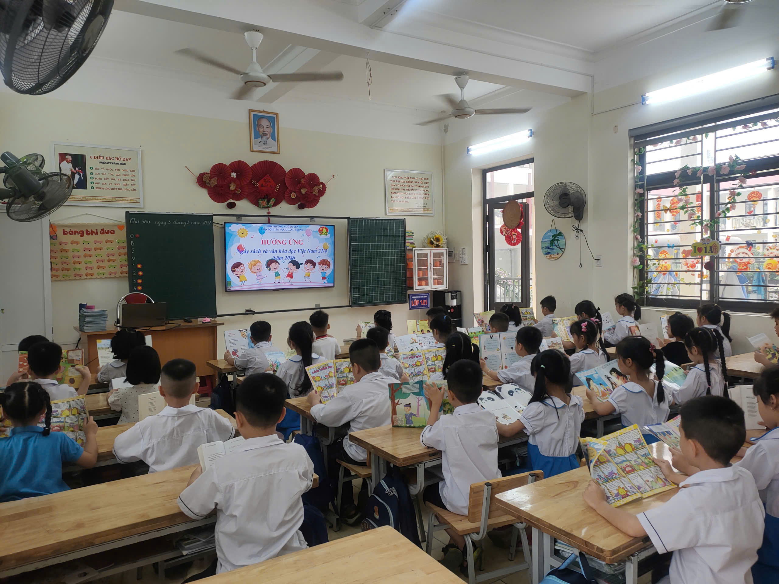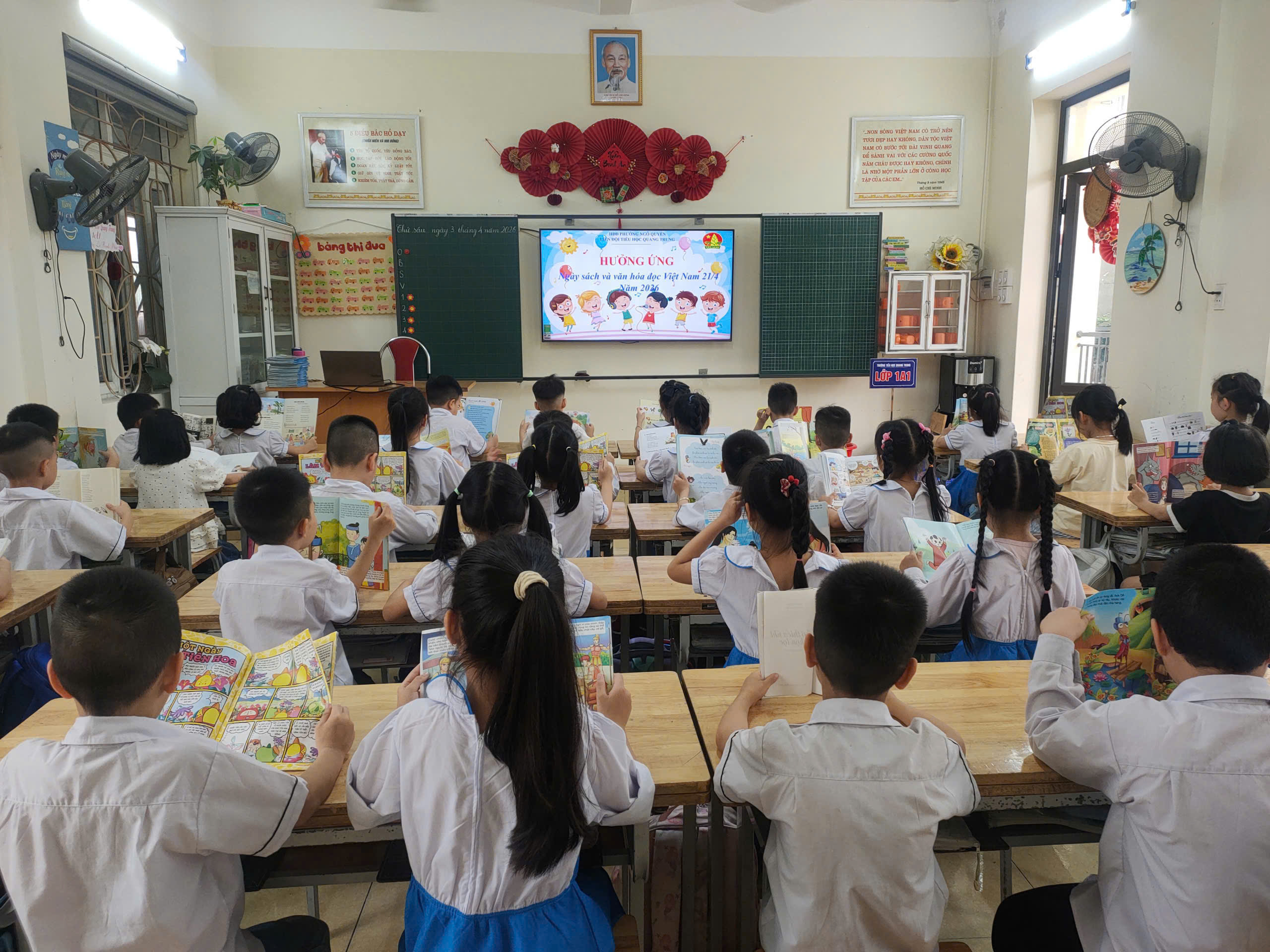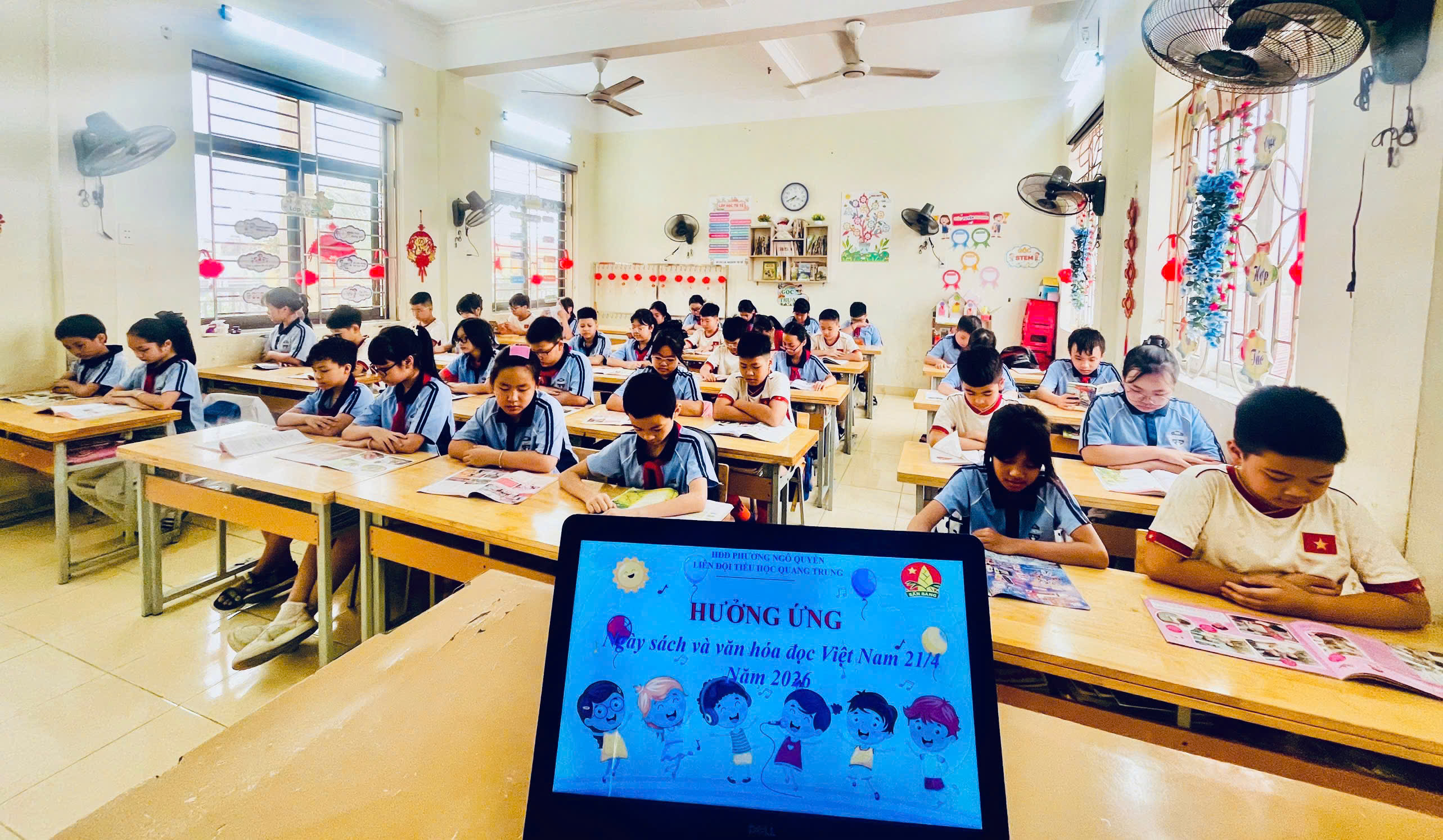 Hưởng ứng Ngày Sách và Văn hóa đọc Việt Nam năm 2026, Trường Tiểu học Quang Trung đã mang đến một không gian đọc sách thật ấm áp, sinh động và đầy cảm hứng cho các em học sinh.
